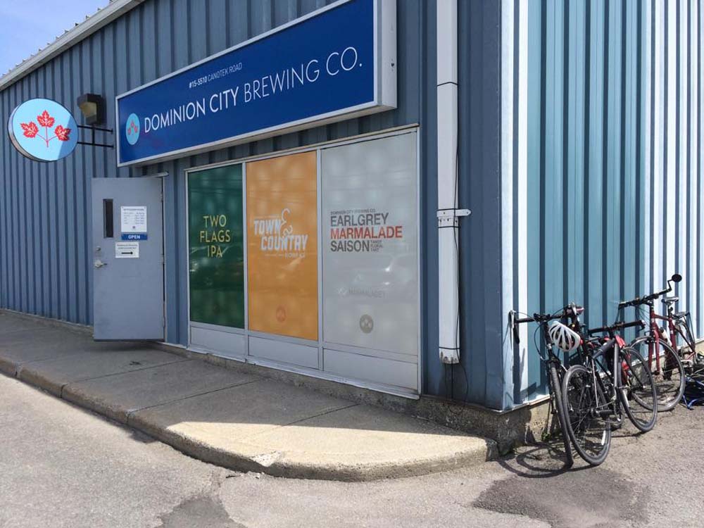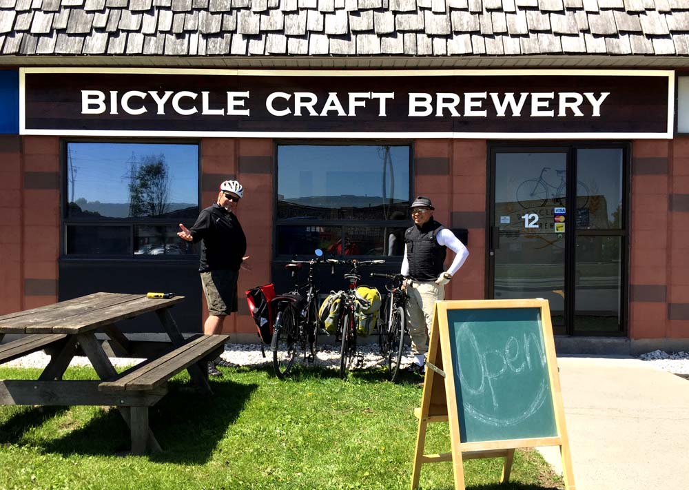 Off we rode to our first stop – Bicycle Craft Brewery on Industrial Road. Great name! The last bit of approach to the brewery along Industrial Road was treacherous. Not only is it filled with speeding trucks and cars, the little shoulder room available to avoid them speeding up behind us had pot holes and sewer grates with slots lined up in the direction of travel. Fortunately the person who greeted and served us is a cyclist, and she told on how to avoid Industrial Avenue. That’ll be the red line on the above map. ie, instead of turning left on Russell road from Coronation Avenue and riding along Industrial, it would have been better to go right on Russell then turn down the lane through the parking to the front of the brewery.