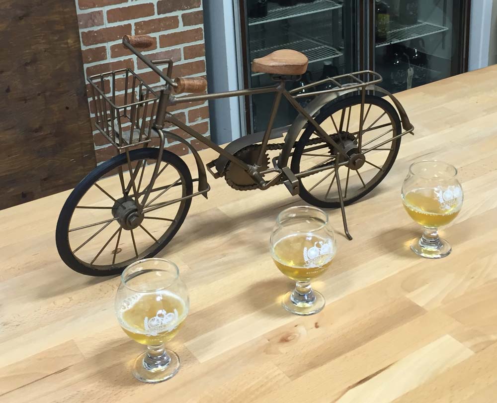 Bicycle Craft Brewery has a bike rack built for three located beside the front door.