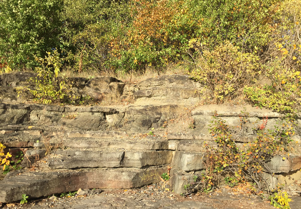 Our first stop is located just off the pathway immediately west of the Champlain Bridge. These stromatolites are visible when water levels are low in the summer and fall. It’s the most impressive display of these fossils in the region.