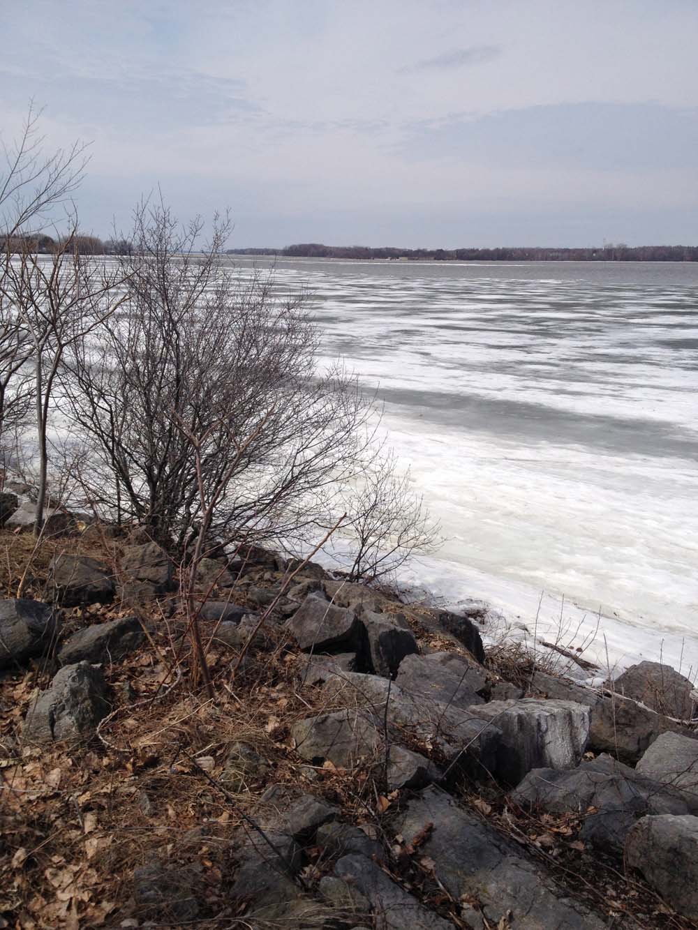 With my panniers all loaded up I followed the same route originally posted on the way back. With all the talk about spring flooding I was apprehensive about riding along the river, but was pleasantly surprised that the water has not covered the path as it did last year. The ice breakup on the river is quite beautiful.