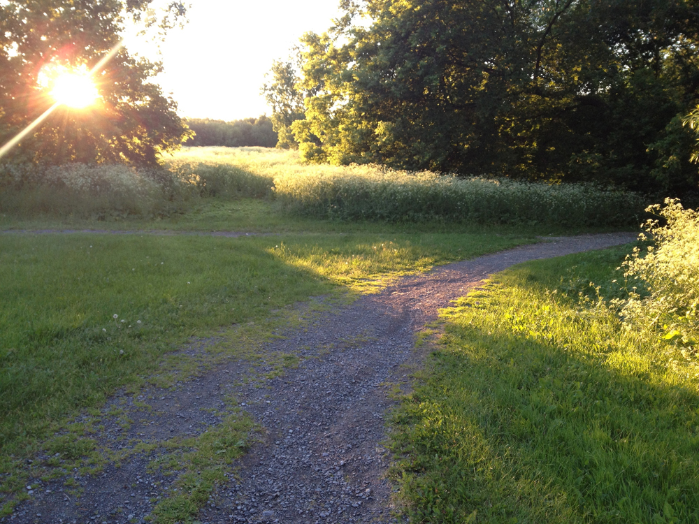 Turn onto McLean Crescent, until you reach a path that takes you through George McLean Park. You’ll recognize it by the hockey boards all up and ready for next season.