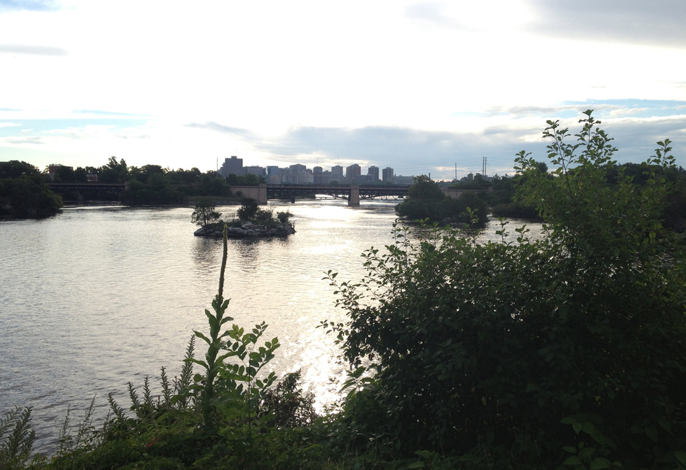 I also recommend another short path along the Gatineau River to where it joins the Ottawa River, as indicated by the purple line on the above map. More great views to be had, such as this one back up the Gatineau.