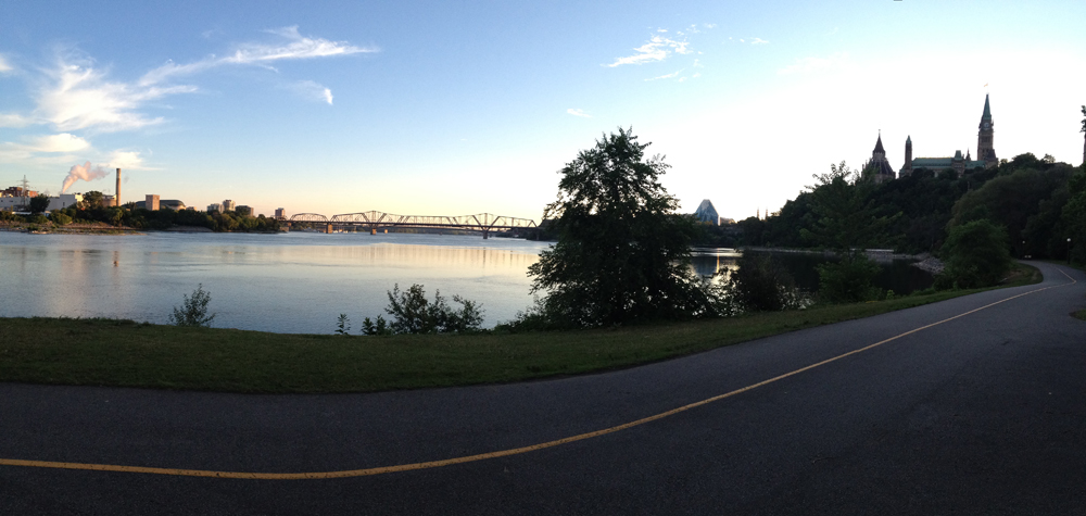 Head up the lane on the other side of the canal, then over to Sussex Drive. Follow Sussex all the way to the roundabout just beyond the entrance to the Governor General’s residence. Get on the bike path on the opposite side of the roundabout and follow it all the way up to where it joins the Rockliffe parkway overlooking the river. I was very pleased to discover they have completed the bike path extension down to where it continues along the waters edge.